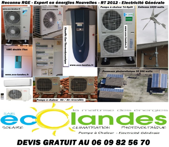 Sarl ECO LANDES est une entreprise d'Electricité générale et des énergies nouvelles et renouvelables et de Plomberie ...
